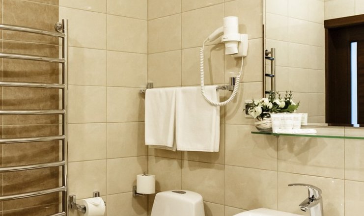 Санузел: с ванной, тапочки, туалетные принадлежности, фен, халат